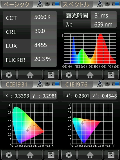 | 電流(A)/電力(w) | 0.167/4 | 0.250/6 | 0.333/8 | 0.542/13 |
